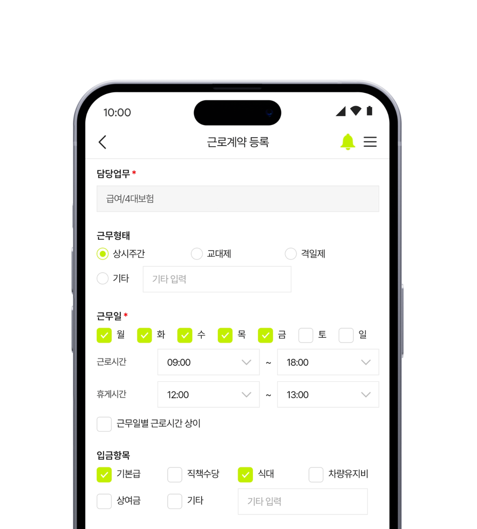 근무일, 근로시간, 급여 정보 등을 입력해서 요청하면