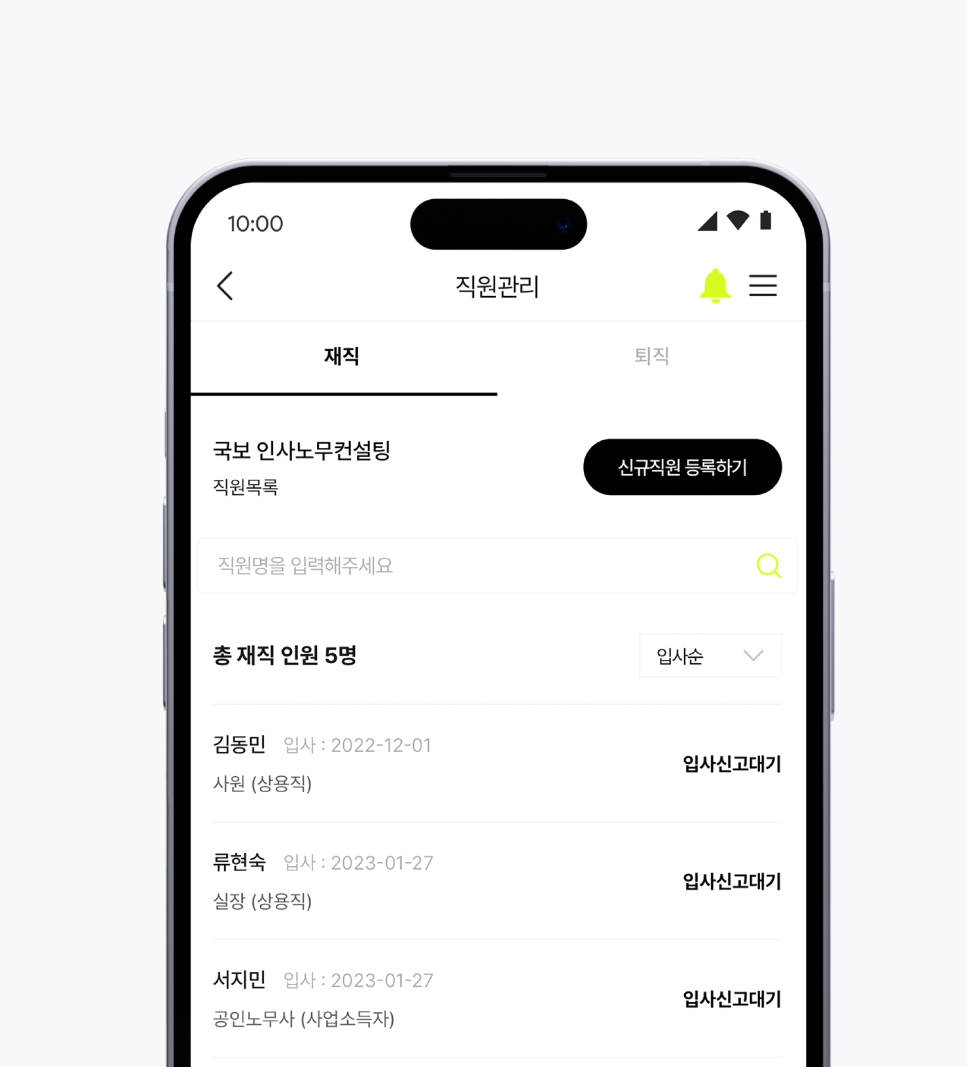 직원 인적사항과 입사정보를 입력하면